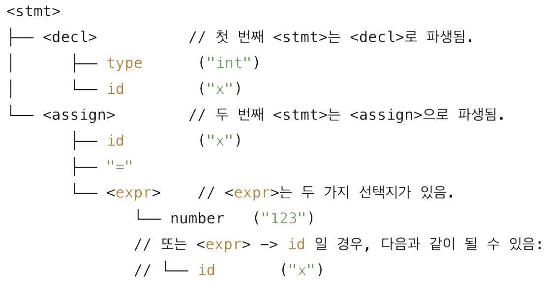 | Inherited Attribute (상속 속성) | 부모 노드 → 자식 노드 | Top-down | 변수의 기대 타입 전달 |